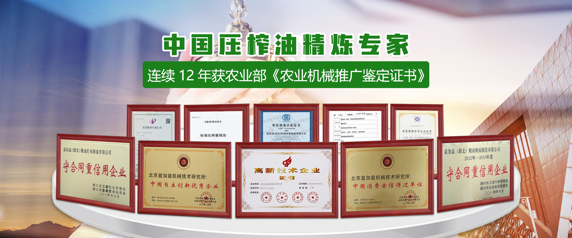 為了更廣泛地帶動榨油機產業技術的更新,推動農業現代化進程。益加益在有著“中國糧油機械之都”的湖北省安陸市,投資數億元興建了占地地150畝的“益加益榨油機產業園”。 糧油機械產業是國家七大戰略性新興產業之一,湖北省安陸市糧油機械產業有規模有品牌、有形象,有地位,長期代表著中國糧油機械的發展水平,被國家授予 “中國糧油機械之都”稱號。